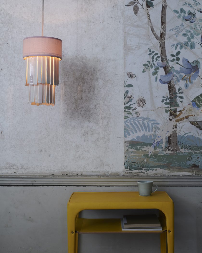 horsehair shade with hand glazed porcelain drops in celadon, coral or sky
